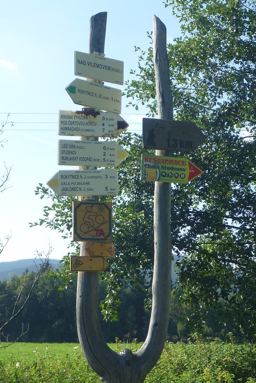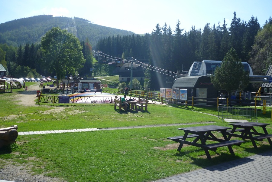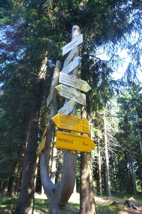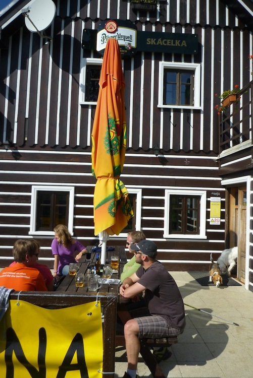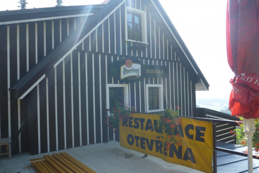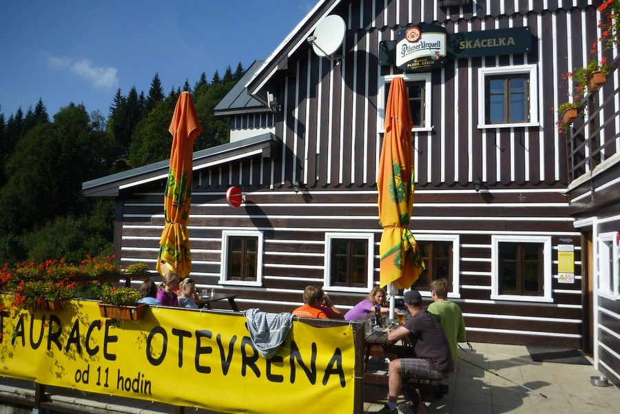 Koho omrzí stale stejné a známější horské chaty jako Dvoračky, může s klidem zavítat na horskou chalupu Skácelka. Příjemné posezení, dobré jídlo i obsluha nás velice potěšila. Odsud jsme sjeli po lokální komunikaci do Rokytnice nad Jizerou a poté opět do kopce, podél Studenovských sjezdovek až na vrchol Studenova. Cestou je možno odbočit na oficiální cyklostezku k rozcestí na Kamlu a po běžkařských tratích zpět do Harrachova. My jsme jeli trochu obtížnější trasu směrem na Sudenov a dále ke Sporthotelu Rýžoviště.