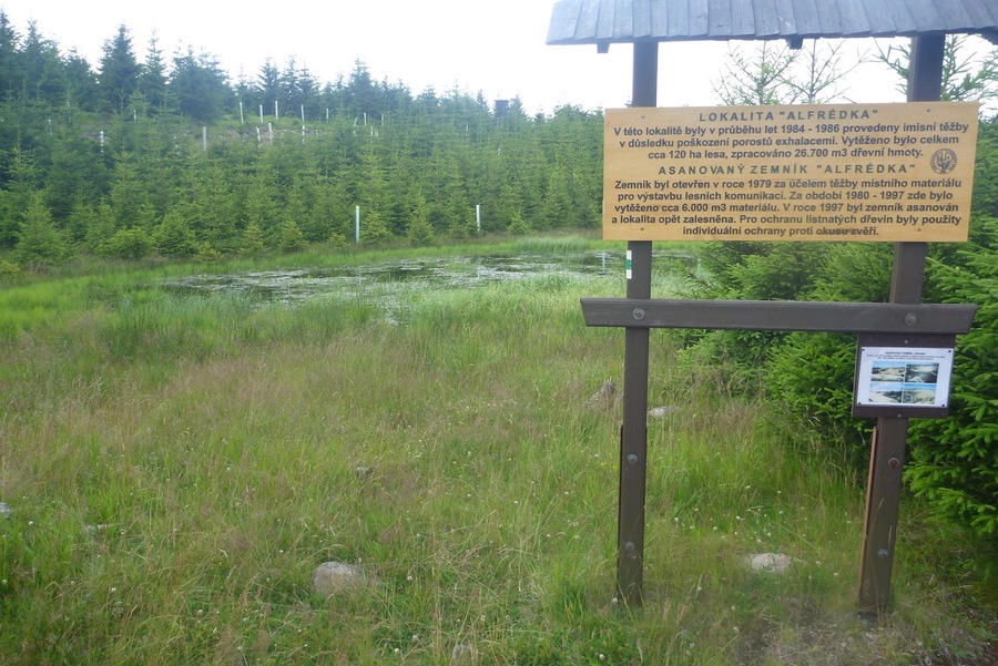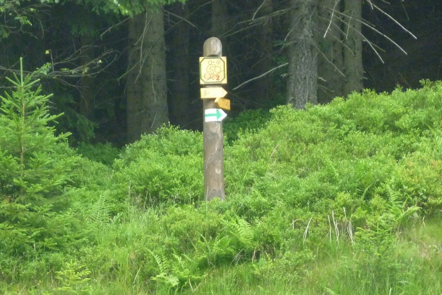 Cyklo ukazatel na terexu |  Výhled na Čertovu horu |  Zde se můžeme ukrýt před nepřízní počasí |